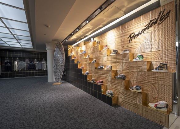 The store combines technology, fashion and urban culture to create a unique physical retail experience for streetwear enthusiasts. The experiential space is wrapped in a 3D printed lattice structure and features interactive projections on the floor and walls. -